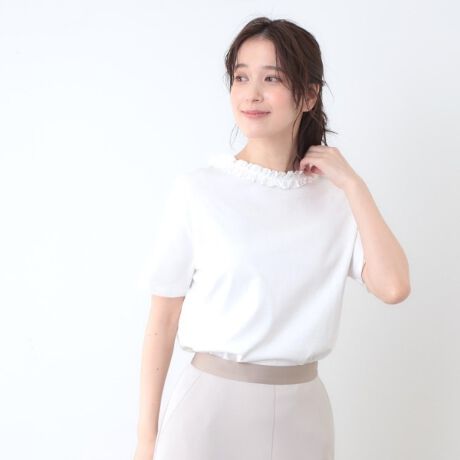 前後2WAYで着用できシンプルながらも首回りがフリルで華やぎます。