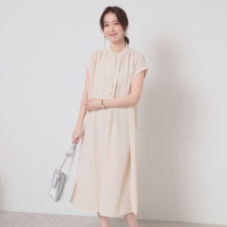 リラックス感のある着心地が魅力の前開きワンピース。