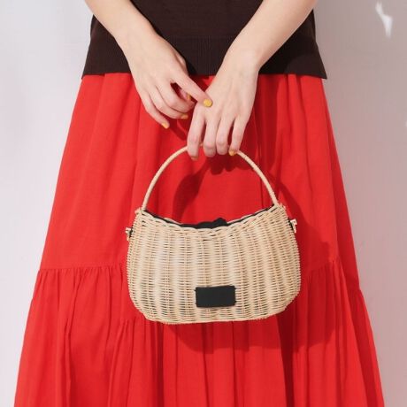 天然素材ラタンで編み上げたワンハンドルデザインの2WAYミニショルダーバッグ