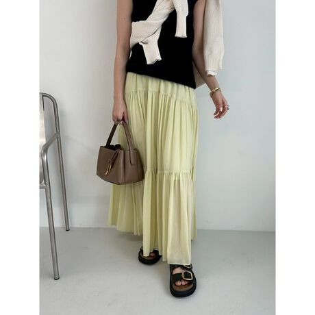 柔らかなシアー素材をたっぷりと使った、涼しげなティアードスカート。少し表面感のある素材はさらりとしていて張り付かず、爽やかに装えます。