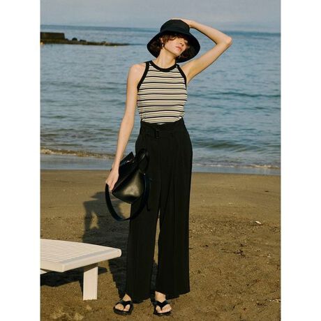 <b>【UVカット】【ウォッシャブル】【ベルトでキュッと絞ったり、折り返したり。ハイウエストが今年らしいキレイめパンツ】</b>