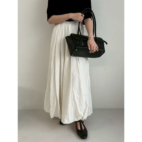裾のエアリーな膨らみと、くしゃっとしたワッシャー素材が印象的なバルーンスカートです。
