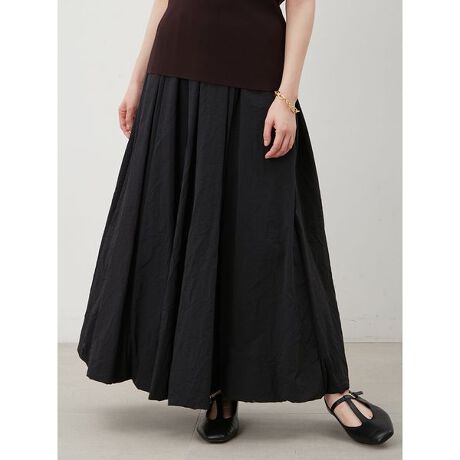 裾のエアリーな膨らみと、くしゃっとしたワッシャー素材が印象的なバルーンスカートです。