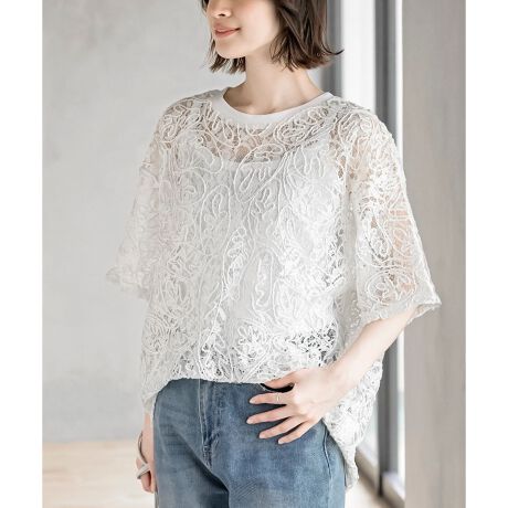 涼しげで華やかなムードを演出する総レースのトップス。