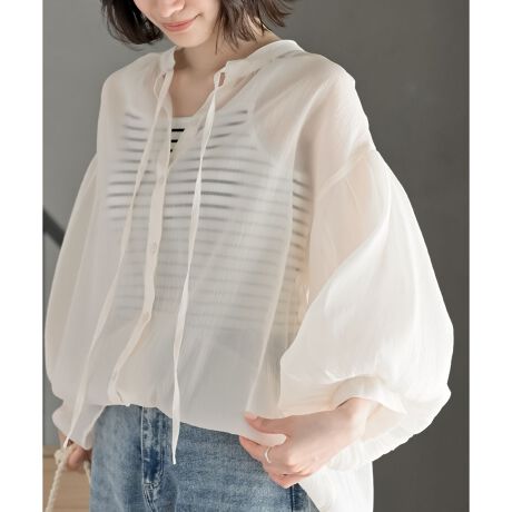 しぼ感のあるシアー素材でさらっと着られて女性らしい肌見せが楽しめる1枚です。