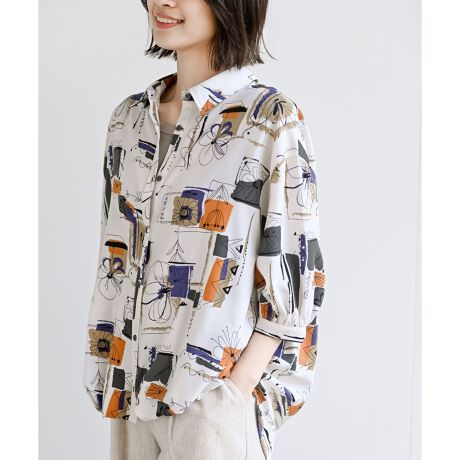 存在感たっぷりのプリントがコーデを盛り上げてくれるシャツブラウス。