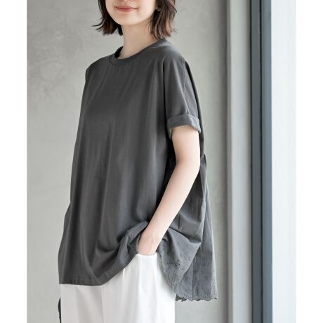 後ろ身頃の下半分をスカラップレースで切り替えた上品なトップス。