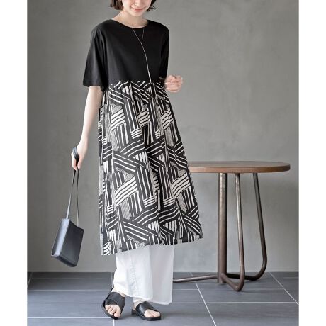 大胆な柄で切り替えた1枚でコーデが映えるワンピース。