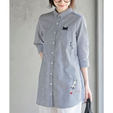 たくさんの猫ちゃん刺繍が楽しいロングシャツ
