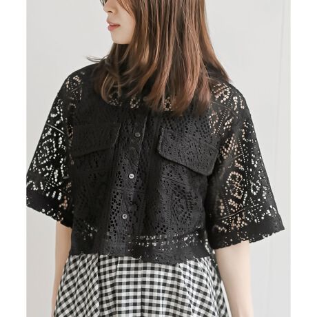 レトロ可愛い総レースのクロプドシャツ