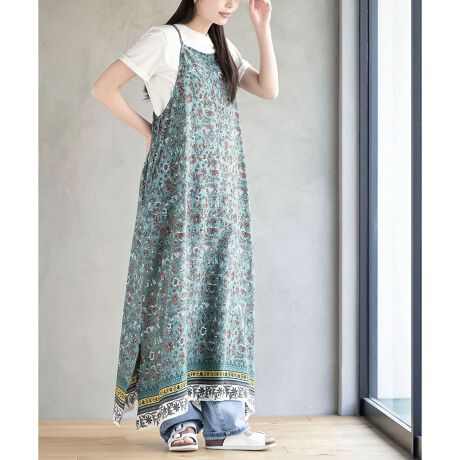 シーズンムード高まるエスニックプリントのキャミワンピ