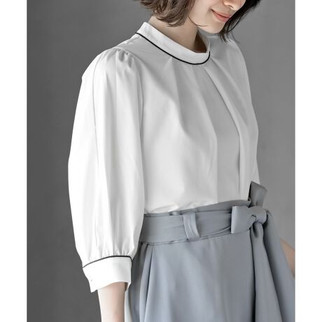 パイピングが大人っぽい上品な印象のブラウス。