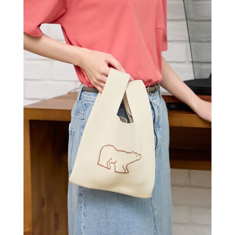 クマ柄が目をひくトートバッグです。ミニサイズながら、サイドにマチがあるのでしっかりとした収納力があります。ジャカード編みのしっかりとしたニット素材で、物を入れても型崩れしません。サラッとした質感なので、オールシーズン使えます。カラフル4色展開で、コーディネートのポイントに使えます。ちょっとそこまでのワンマイル用にもお勧めです。