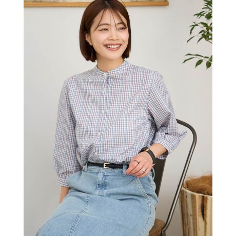 接触冷感チェックブラウス
