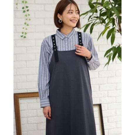 接触冷感機能付きで汗ばむ季節にぴったりなストライプシャツです。羽織に1枚着にとデイリーユースしやすいです。メンズと同素材で展開しています。