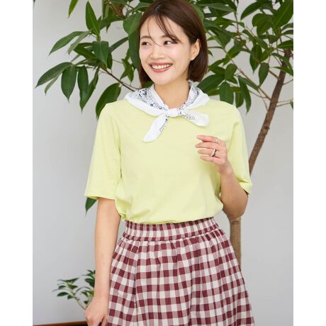 ベーシックのフレアシルエットTシャツです。シンプルなデザインですが、体のラインを拾わないシルエットと長めの半袖丈で肘近くまでカバーしてくれる嬉しい要素が詰まったアイテムです。