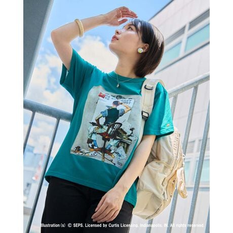 軽いタッチでアメリカの市民生活を描き、伝統的な「古き良きアメリカ」を代表する彼のアーカイブから2種のアートを選び、Tシャツに仕上げました。生地には、ヨレにくい襟、接触冷感・吸水速乾というタフで機能性にも優れた上品なプレーティング天竺素材を使用し、快適な着心地にもこだわりました。
