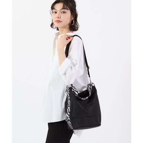 シンプルな無地のブラック(黒)に、大胆なゼブラ柄のウェビングを合わせたクールなモノトーンデザイン。コーディネートのアクセントにも◎。