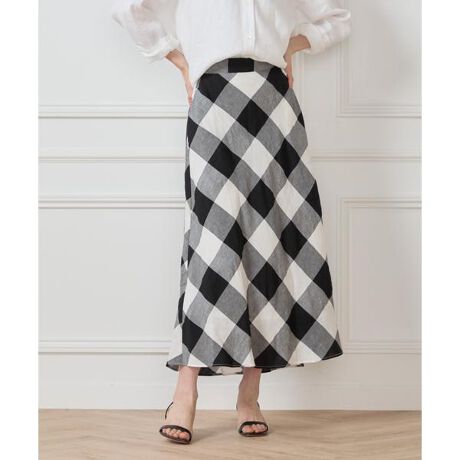 素材感を活かしたシンプルなバイアスフレアスカート。広がりすぎない分量感ですっきりと仕上げました。やや太めのベルトでハイウエスト感をプラスし縦シルエットを強調しました。ボディラインを拾いにくいドライなハリ感、ウエストの後ろゴム仕様などで快適な着用感を叶えました。存在感のあるブロックチェックはスタイリングのポイントになる存在感のあるスカートです。・裏地あり・左サイドファスナーあり・ウエスト後ろゴム仕様・ポケットなし・水洗い可■サンプル撮影商品■こちらの商品はサンプルでの撮影となっております。実際の商品とは、サイズや色味、素材、デザイン等の仕様が若干変更になる場合がございます。