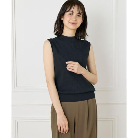 ■デザインすっきりとしたシルエットのワイドリブニットプルオーバー。計算されたリブピッチが縦方向を強調しすっきりとした印象に。また、編み続きにしたモックネックがほどよく首周りをカバーしエレガントな着こなしもさまになる1着です。■素材特殊な紡績技術を使って開発した清涼感のあるドライタッチな素材です。コットンの特徴である肌触りが良さ、軽さと通気性を持ち、ポリエステルのハリ感が体のラインを拾いづらくしてくれる素材です。・水洗い可同素材のVネックカーディガン品番:7152178022同素材のフレンチスリーブニット品番:7152170021■サンプル撮影商品■こちらの商品はサンプルでの撮影となっております。実際の商品とは、サイズや色味、素材、デザイン等の仕様が若干変更になる場合がございます。