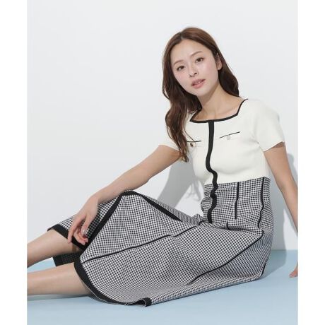 きちんと見えするギンガムジャガードのニットワンピース。細かいギンガムチェック柄をジャガード編みで表現してオトナかわいいデザインに。ウエスト位置を高く切り替えているのでスタイルアップを狙えます。ボタンや配色トリミングを入れてレディライクなムードを演出。ドライタッチな糸を使用しているため夏も着ていただけます。※撮影時照明の関係により、色味が違って見える場合がございます。またパソコン・スマートフォンなどの環境により、若干製品と画像のカラーが異なる場合もございます。予めご了承ください。商品の色味は、商品単品画像をご参照下さい。※商品画像はサンプルのため、色味やサイズ等の仕様に変更がある場合がございますので、予めご了承ください。