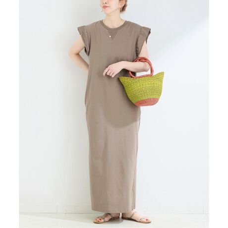 天竺素材のハリ感・適度な肉感があるので肌離れも良く、一枚で着用いただけるワンピースです。袖にフリルを入れたフレンチスリーブで肩回りもすっきり見えするデザインにしています。