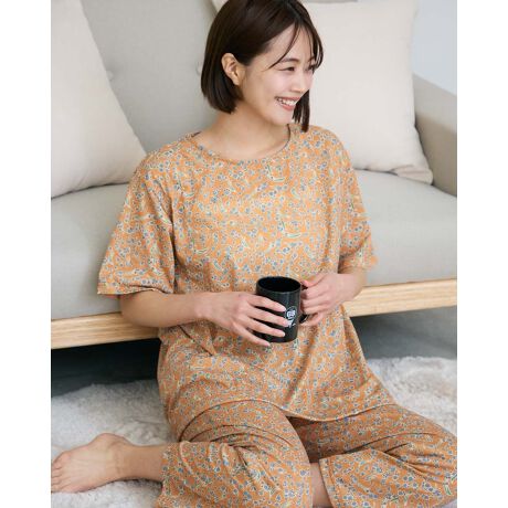 優しい色使いの花柄チュニックのリラックスパジャマです。日常のカジュアルウェアとしても着用していただけます。