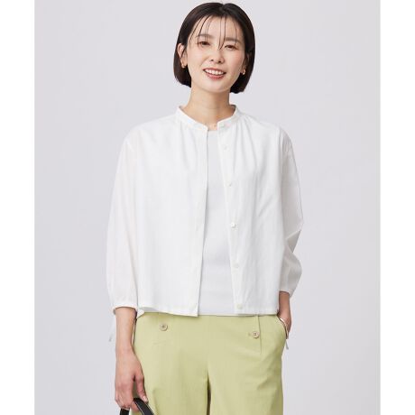 【洗える・接触冷感・吸水速乾】麻SOLID バンドカラー シャツ ブラウス