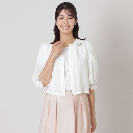 襟元にはタックが施され、袖口はシャーリングゴム仕様で、袖丈を調整できるデザインとなっています。