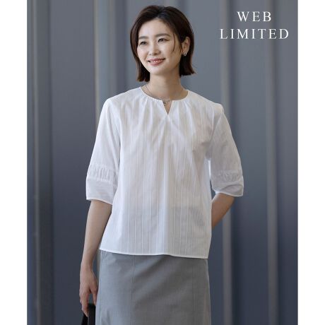 キーネックで魅せる、涼やかなエレガンスさが魅力!自然な風合いに落ち感をプラスしたキーネックブラウス