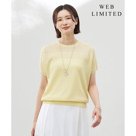 ■デザイン程よい透け感がアクセントのストライプニット。ニットならではの編地切替が、シンプルながらも存在感のある1枚に仕上がっています。同素材のカーディガンを羽織れば、統一感のあるアンサンブルスタイルが完成。コーディネートの印象を損なうことなく、気分やシーンに合わせた着こなしを楽しめます。さらに、さりげなく気になる二の腕をカバーしてくれるのも嬉しいポイント。シンプルながらも計算されたデザインが、大人の余裕を魅せるベーシックアイテムです。