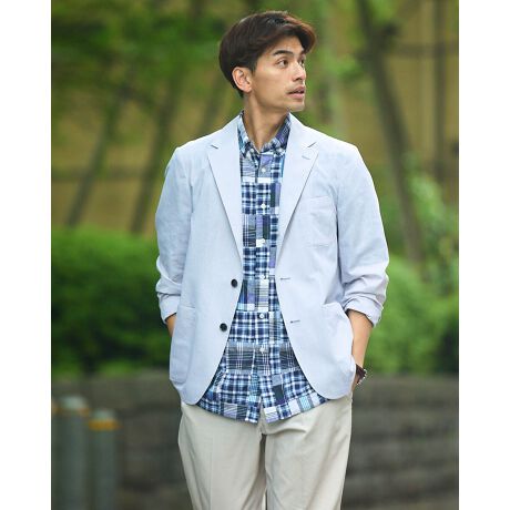 涼感のあるシャンブレー生地を使用したジャケットです。シャツ感覚で羽織れる軽さが特徴です。合わせるインナーによって様々なコーディネートをお楽しみいただけます。ご家庭でのお洗濯(手洗い)が可能で、長い期間ご着用いただけます。