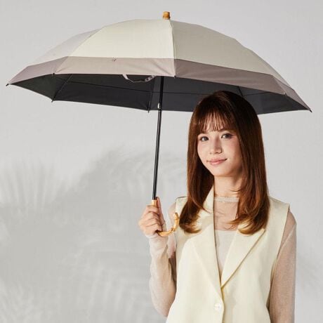 【どんな天候やシーンでも快適に】コンパクトさと美しさを兼ね備えた「nino bicolor 2段式折りたたみ日傘」が新登場。【上品なスタイルを演出】バイカラーの配色がアクセントになり、大人な雰囲気をプラス。どんなスタイルにもマッチ。【お好みに合わせてスタイルチェンジ】折ればコンパクト、折らずに長傘として。気分に合わせて使える2WAY仕様。【一級の完全遮光で晴れた日の味方】遮光率&UVカット率100%!紫外線や太陽の光をしっかりカット。【まるで日陰のような涼しさを体感】光を反射させて温度の上昇を防ぐ遮熱効果も高く、暑い日の熱中症予防に。(※1)内側ブラックカラーで、照り返しによる肌や目への反射もカットします。【雨粒をサッと弾く超撥水加工】撥水度は最高ランクの5級。雨傘としても使えて、お天気が不安定な日も安心。(※2)激しい雨の際は、雨水が染みることがあるのでご注意ください。【ネイルガード付きの手開きタイプ】傘生地がスムーズに開閉できる手開き傘。手指を挟みにくいよう配慮された安心設計。【サクッと留められるボタン式バンド】傘生地を留めるバンドは、バチンっと留めやすいスナップボタンタイプ。嬉しい2段階式。【丈夫で風合いのあるハンドル】ナチュラル感たっぷりなハンドル。耐水性があり、雨に濡れても変形しにくいバンブー素材。【持ち歩きに便利な収納袋が付属】ボタンで長さが変えられる収納袋。ナスカンでバッグなどに取り付けできるのも嬉しい!【お気に入りを選べるカラー】年代問わず使いやすいカラーリング。雨の日も楽しくお出かけ☆