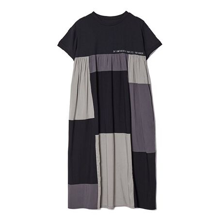 身頃がカットソーでスカート部分が3色の布帛生地をミックスして作ったワンピースです。