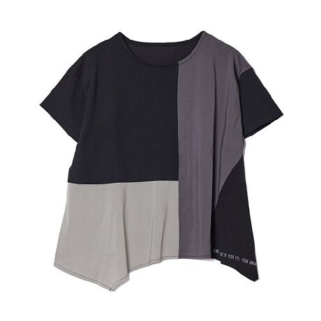 [型番:V10067]◆ 切り替えデザインが個性的 ◆カットソーと3色の布帛を組み合わせた遊び心のあるプルオーバーです。カットソー部分はシンプルな作りですが、裾や脇の布帛パーツはたくさんフレアをいれてAラインのシルエットに!腰周りも隠れる丈感なので安心感もあり。1枚でバッチリ決めてくれるアイテムです。model:H165