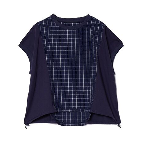 [型番:VB0094]◆ シンプルながらも遊び心あるデザイン ◆カットソーとサッカー生地のミックスプルオーバーです。裾はパラコードで絞れる仕様になっているので、気分に合わせたスタイルを楽しめます。前後差のある着丈で、気になるヒップをカバーしつつスタイルアップが叶います。更に切替が裾に向かって細くなるように入っていることで細見え効果も狙います。model:H165