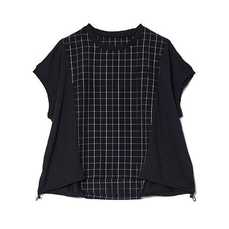 [型番:VB0094]◆ シンプルながらも遊び心あるデザイン ◆カットソーとサッカー生地のミックスプルオーバーです。裾はパラコードで絞れる仕様になっているので、気分に合わせたスタイルを楽しめます。前後差のある着丈で、気になるヒップをカバーしつつスタイルアップが叶います。更に切替が裾に向かって細くなるように入っていることで細見え効果も狙います。model:H165