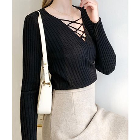 【Jasmine】フロントレースアップデザインニットトップス