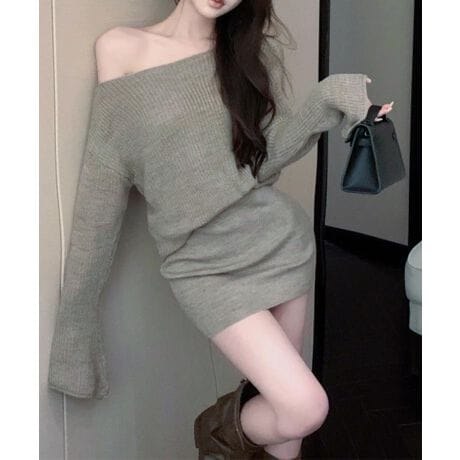 【Jasmine】セットアップ ワンショルダーニットプルオーバー+ミニスカート