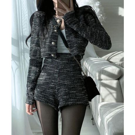 【Jasmine】セットアップ ツイードノンカラージャケット+ショートパンツ