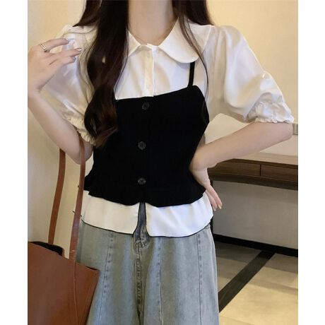 インナーにトップスを重ねたレイヤード風トップスで簡単に洒落見え。