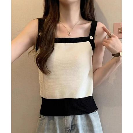 スクエアシルエットがデコルテを綺麗に演出し、モードな雰囲気を醸し出す。