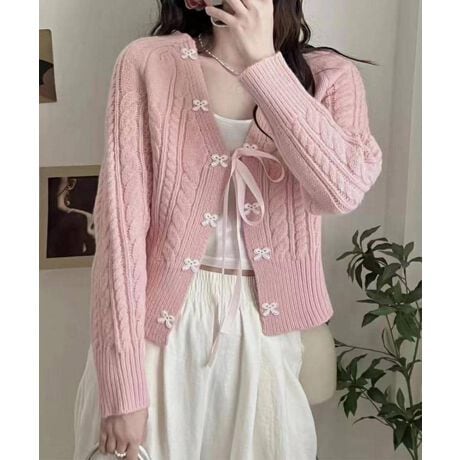 【Jasmine】ケーブル編みリボンカーディガン