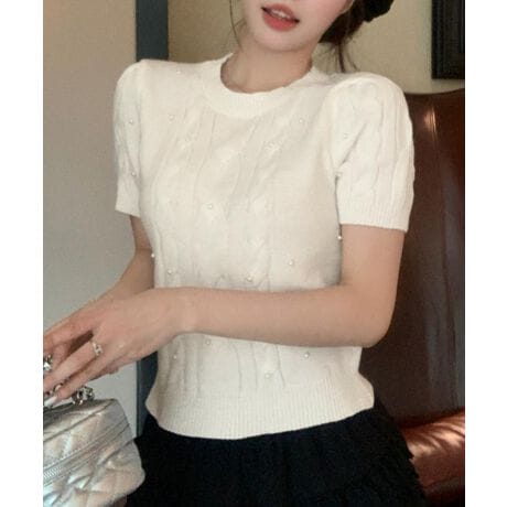 【Jasmine】ケーブル編みパールニットプルオーバー