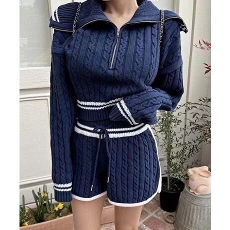 【Jasmine】ケーブル編みプルオーバー+ショートパンツ