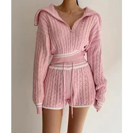 【Jasmine】ケーブル編みプルオーバー+ショートパンツ
