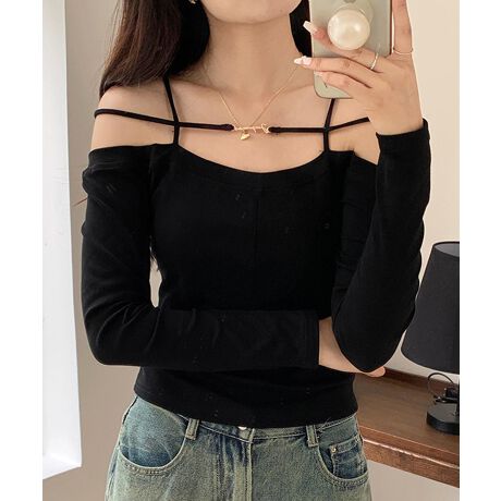 【Jasmine】オフショルダーストラップ長袖Tシャツ