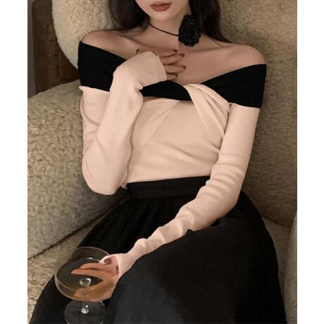 大胆に開いたデコルテラインが華やかな印象を与え、デートやお出かけシーンにもぴったり。