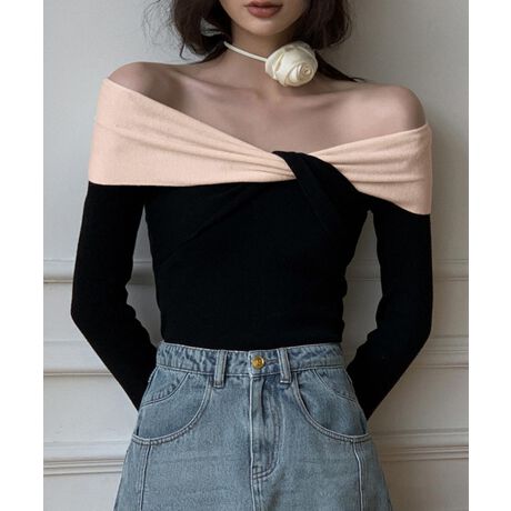 大胆に開いたデコルテラインが華やかな印象を与え、デートやお出かけシーンにもぴったり。