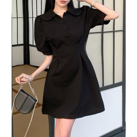 フロントのボタンデザインやパフスリーブでクラシカルさも。